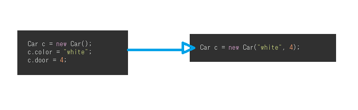 - Car인스턴스를 생성할 때, 생성자 Car()를 사용한다면, 인스턴스를 생성한 다음에 인스턴스변수들을 따로 초기화해주어야 하지만, 매개변수가 있는 생성자를 사용하면 동시에 원하는 값으로 초기화를 할 수 있게 된다.